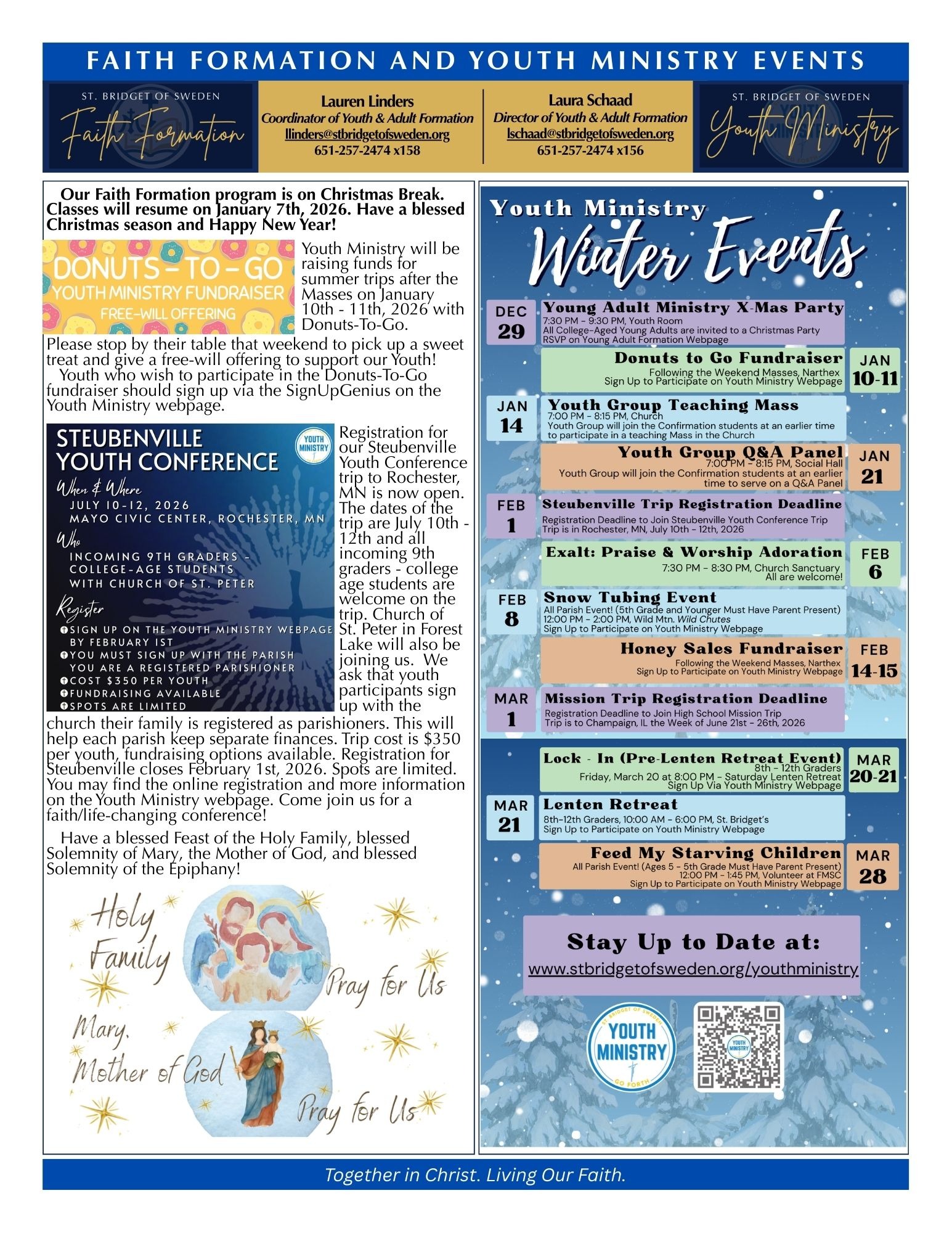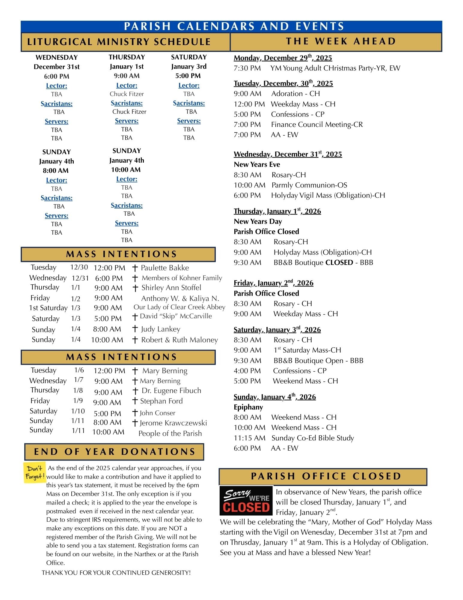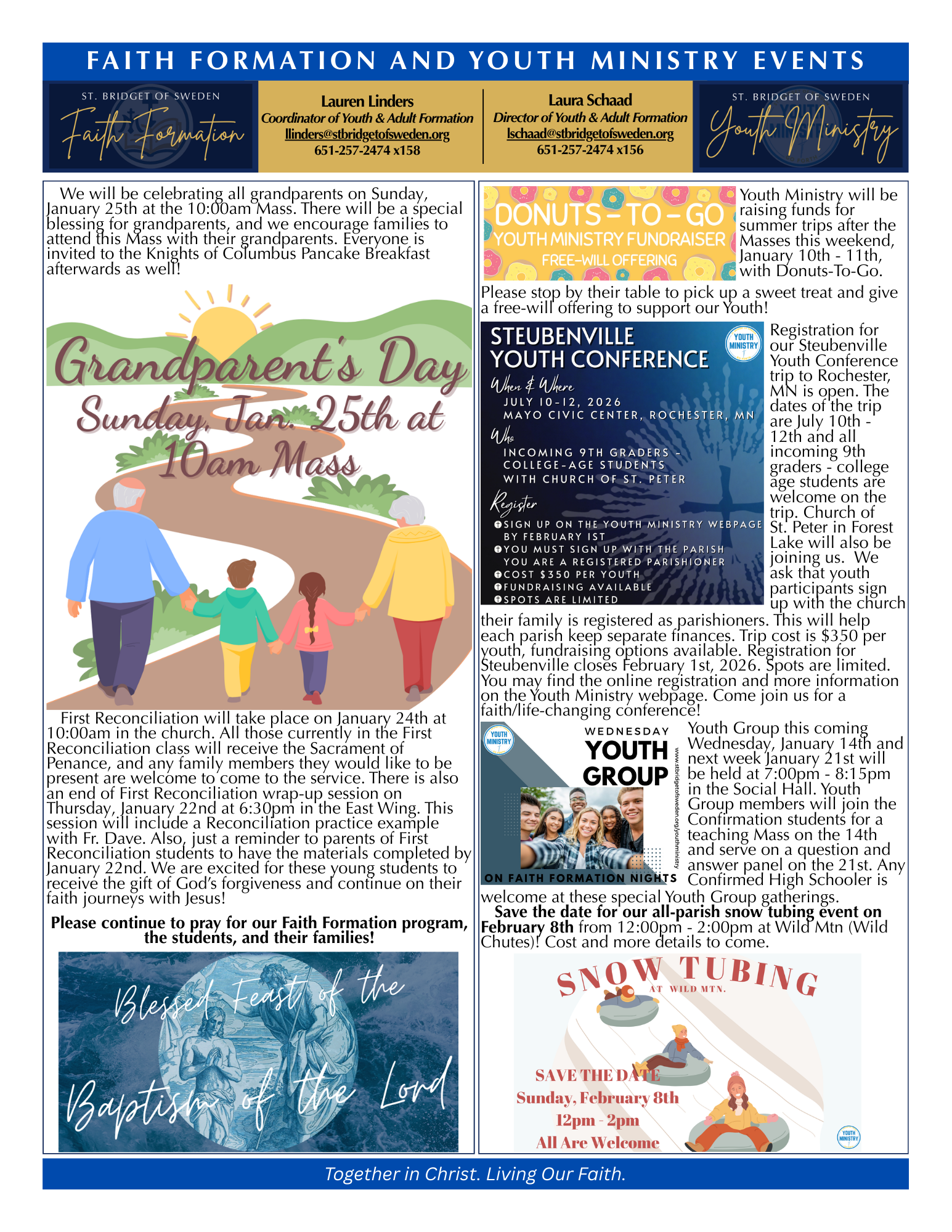 If you are using an Apple device or product (iPhone, iPad, Macbook, etc.) you may have issues viewing large PDF files online, specifically our bulletin PDF files. This has been an ongoing issue with Apple products when viewing our bulletin online that unfortunately we cannot fix. However, below is a different file type (jpegs) of the bulletin pages. Please view the bulletin online by clicking on the document pages below if you have issues with the online bulletin loading in PDF form.